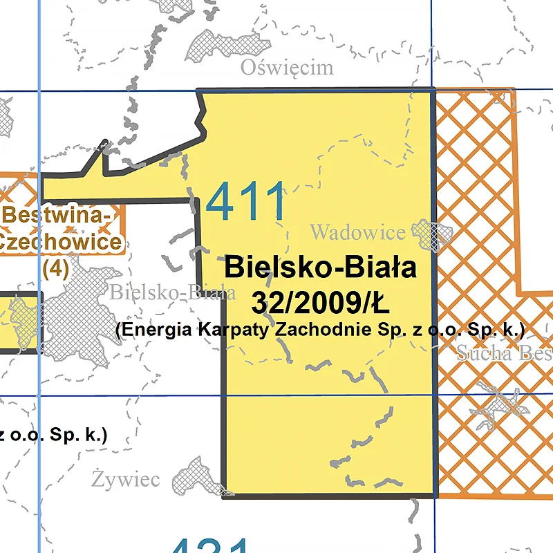Koncesja Bielsko-Biała (obejmująca część bloków koncesyjnych nr 411 i 431).